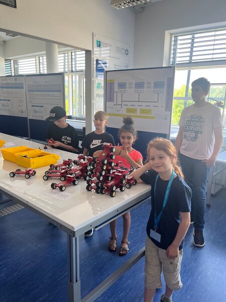 Im Rahmen eines Planspiels montierten Kinder und Jugendliche einen Lastkraftwagen. Hierbei lernten die Teilnehmenden, wie Logistik- und Montageabläufe optimiert werden können, um die Anzahl der gefertigten Nutzfahrzeuge zu steigern. Spiel und Spaß standen dabei stets im Vordergrund.
