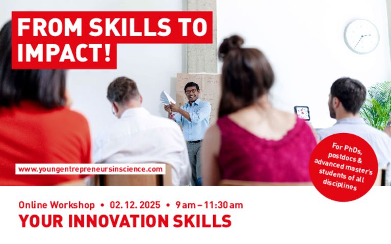 Online Workshop "Your Innovation Skills" am 02.12.2025, 9 bis 11:30 Uhr: Das Gründungsbüro der Hochschule Koblenz bietet Masterstudierenden und Doktoranden in Kooperation mit der Initiative „Young Entrepreneurs in Science“ einen digitalen Workshop „Your Innovation Skills“. Entfacht euer Innovationspotenzial. Reflektiert eure Fähigkeiten als Innovator und entdeckt, was ihr bereits mitbringt! Trainiert euer unternehmerisches Denken und trefft andere Masterstudierende, Doktoranden oder Postdocs mit tollen Ideen. Interessiert? Meldet euch gerne hier bis zum 29.11.2025 an.