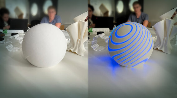 Im Seminar für additive Fertigungsverfahren haben Studierende eine Leuchten für das eigenen Smart Phone gestaltet und hergestellt. Die Leuchte sollte durch die Taschenlampe des Telefons betrieben werden und musste passgenau auf das Gerät zugeschnitten sein. Die spielerische Übung Zielt auf das Zusammenhänge Verständnis zwischen Gestaltung und Produktionsverfahren ab.