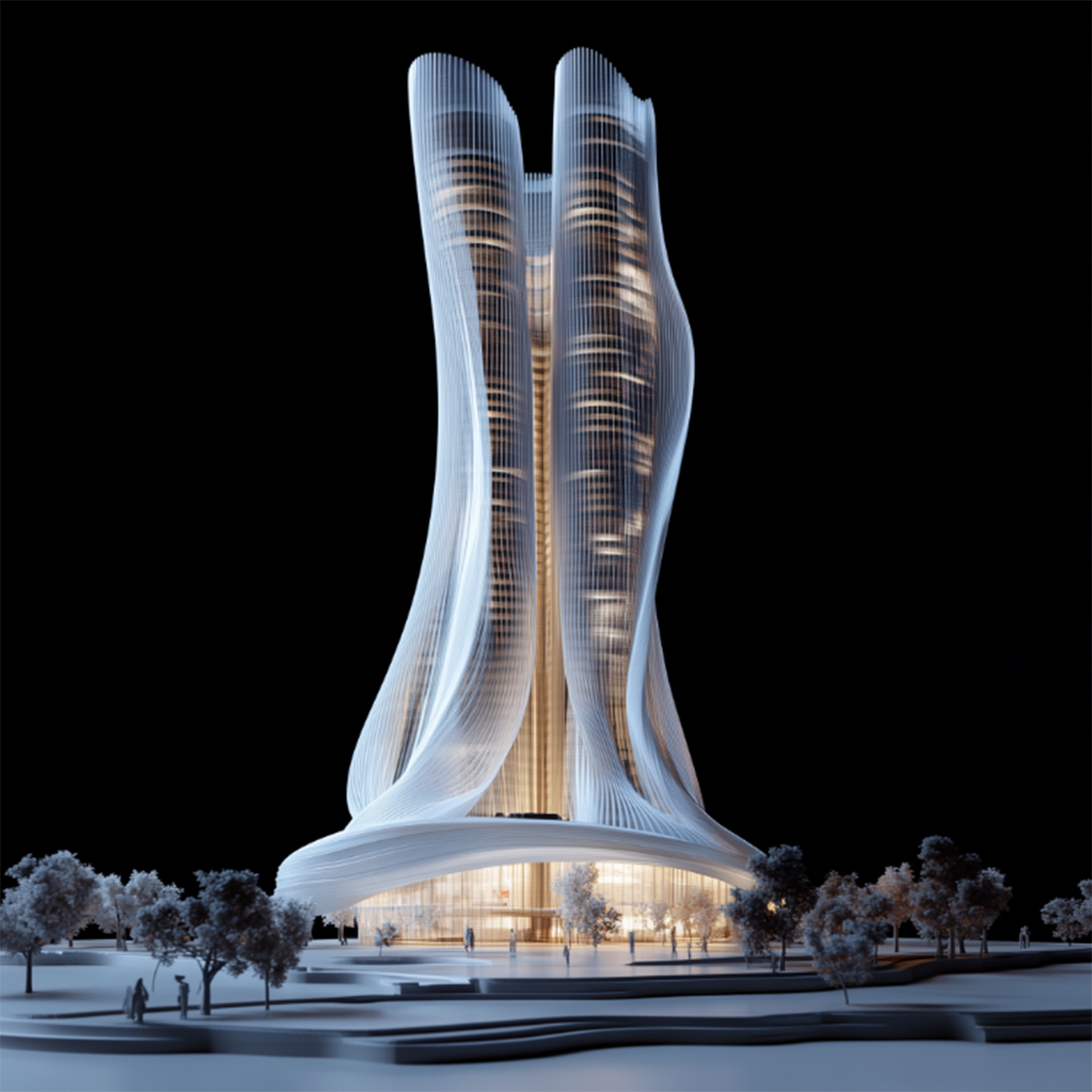 In dem Wahlmodul "Parametrisches Gestalten” sind Entwürfe für Ausstellungspavillons entstanden, die das Verhältnis von Materialität, Raum und digitaler Formgebung neu interpretieren. Die Idee, sichtbare und unsichtbare Kräfte – Konstruktion, Licht, Kultur und Zeit – zu einer zeitgenössischen architektonischen Ordnung zu verweben, bildete den Ausgangspunkt.