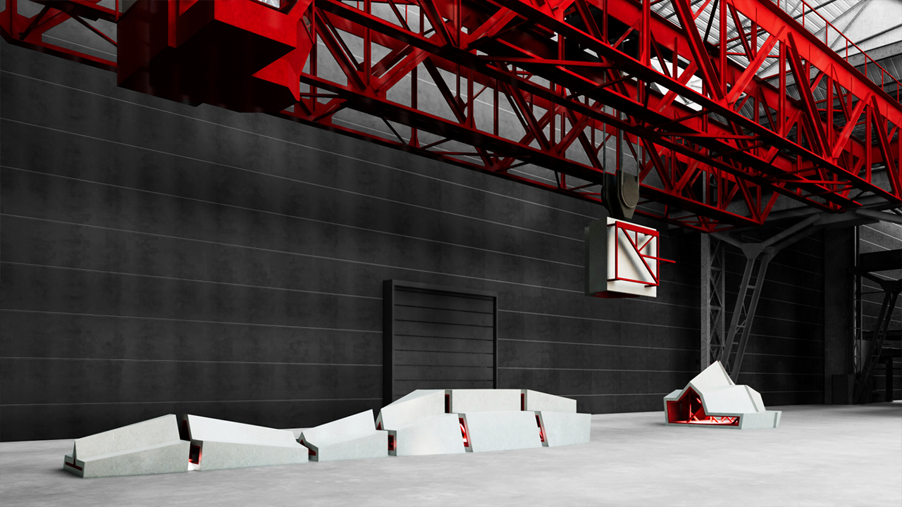 Im Rahmen eines Masterwahlmoduls des Fachbereichs Architektur der Hochschule Koblenz entwickelten Studierende gemeinsam mit vier eingeladenem internationalem Künstler*innen Entwürfe, die den Kran in Szene setzen und zugleich auf die Geschichte des Ortes verweisen. Die Studierenden besichtigten die Halle dabei vor Ort und arbeiteten in interdisziplinären Teams. Sie modellierten, visualisierten und überarbeiteten Ausstellungskonzepte, die den Dialog zwischen Kunst, Raum und industrieller Geschichte betonen.