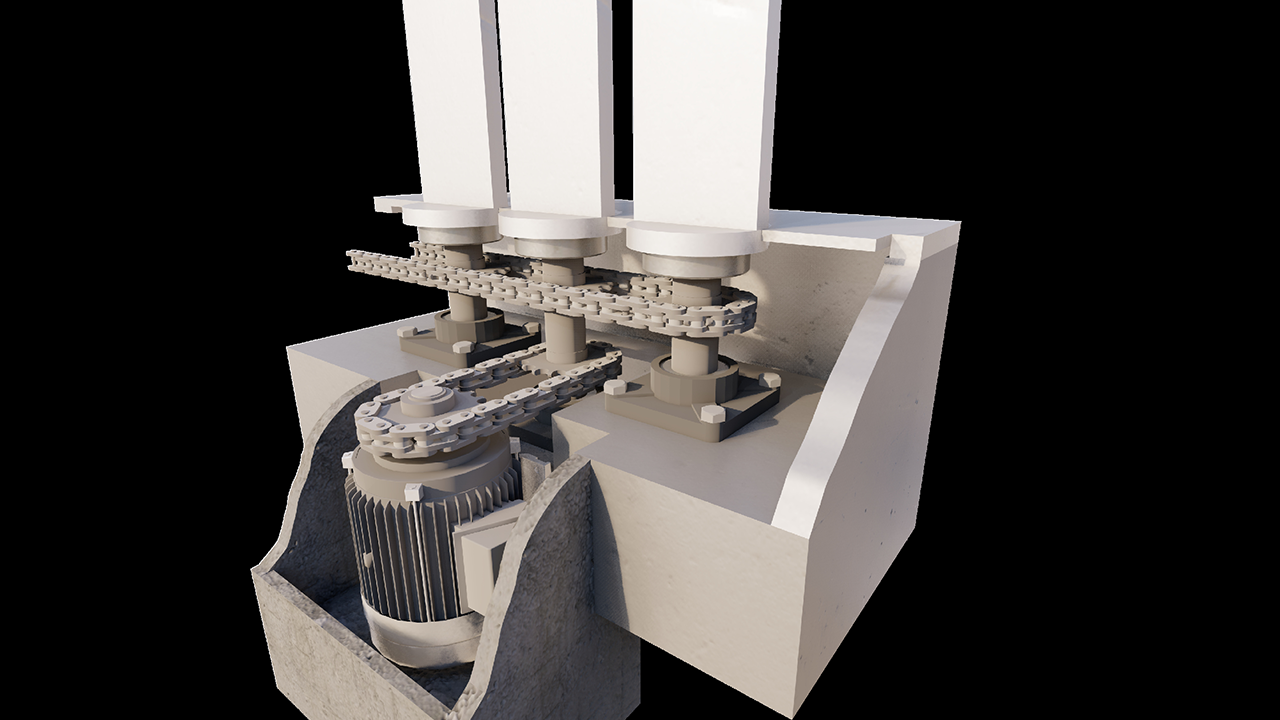 Der gezeigte Entwurf eines multifunktionalen Pavillons für die BUGA 2029 greift dieses Prinzip auf. Rotierende, entlang ihrer Längsachse verdrehte Lamellen erzeugen ein lebendiges Wechselspiel zwischen Innen- und Außenraum. Durch die diffus reflektierenden Oberflächen entstehen fließende Übergänge, in denen sich Fragmente der Umgebung spiegeln und Architektur, Licht und Bewegung zu einem dynamischen Raumerlebnis verschmelzen.