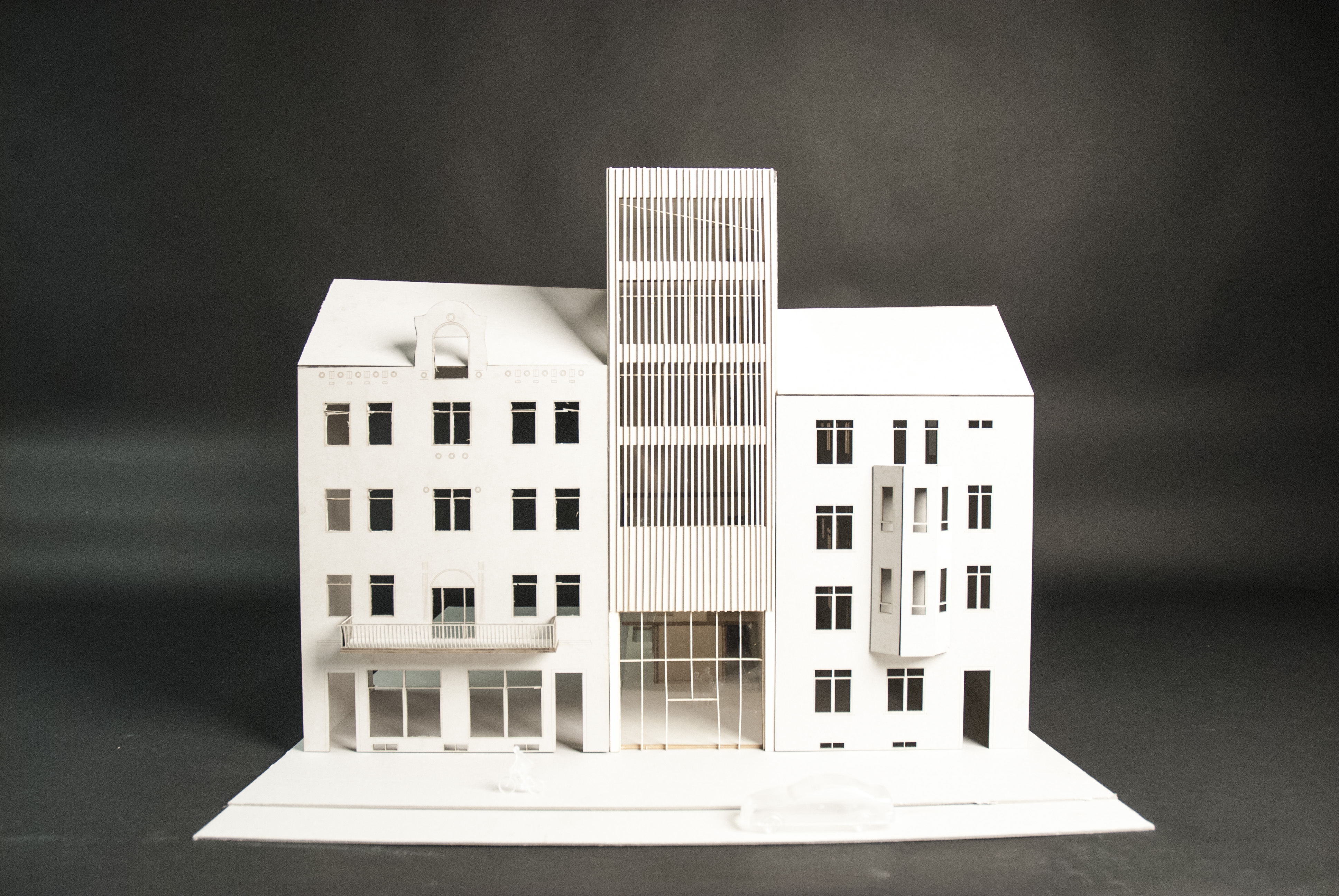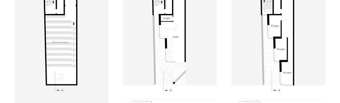 Das Erlernen eines Musikinstrumentes, das Musizieren im Ensembles und das Aufführen von Musik sind feine Sachen. Um aber einerseits die Mitmenschen nicht zu stören, andererseits günstige Bedingungen für die Musiker und das Publikum zu erzeugen braucht es geeignete Räume. Solche zu entwerfen ist die Aufgabe dieser Bachelor-Thesis. Eine besondere Herausforderung stellt das Grundstück dar: Eine schmale und sehr tiefe Baulücke nahe dem Koblenzer Hauptbahnhof. Das Raumprogramm umfasst neben dem Eingang mit einem Café zwei kleine Konzertsäle, Proberäume für Ensembles und Räume für den Einzelunterricht. Die Ausstellung der Entwurfsergebnisse ist für den 15.06.2015 geplant.